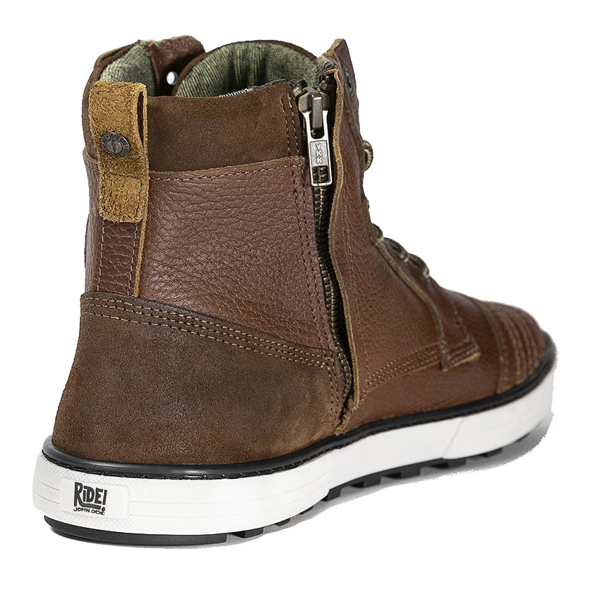 All John Doe’s motorcycle shoes also have a “water-stop function” (such as trekking and hiking shoes). That is, the tongue is designed to prevent water from seeping into the shoe. The ‘easy access’ to the boat via the zipper allows the rider to quickly and easily pull the shoe on and off. An oil-resistant, vibration-absorbing non-slip sole is also standard on our John Doe motorcycle boots. Details such as a John Doe logo embossed in leather on the ankle protection or the JDM metal emblem on the tab complete the classic design of the “Shifter” sneaker.