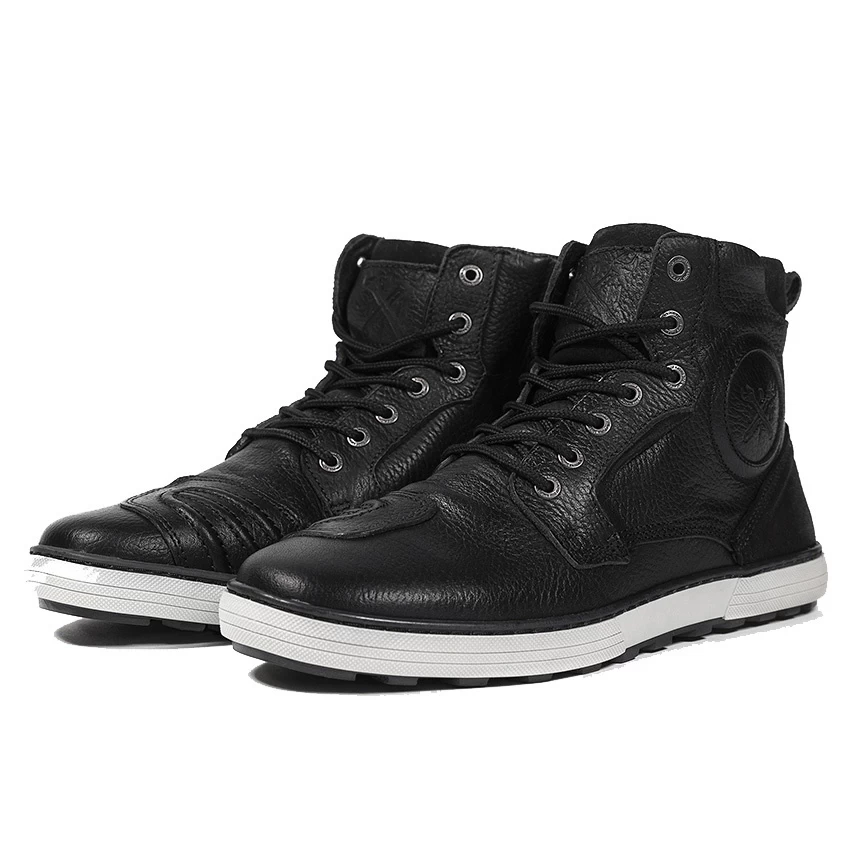 The Shifter is a sneaker-style shoe specially designed for motorcyclists. This sporty sneaker has all the important functions that a modern motorcycle shoe requires. The combination of real cowhide and added XTM-Fiber® membrane (fiber technology made from Aramid fibers, Coolmax® and Lycra®) gives this shoe its high functionality and the respective protection under extreme conditions. So the John Doe Shifter offers extra protection against wear on normal leather motorcycle boots. Another feature is the John Doe Thirstoint protection, which provides extra reinforcement to the ankle, heel and front. Leather “shift protection” protects the shoe adequately and gives extra grip when moving the motor.