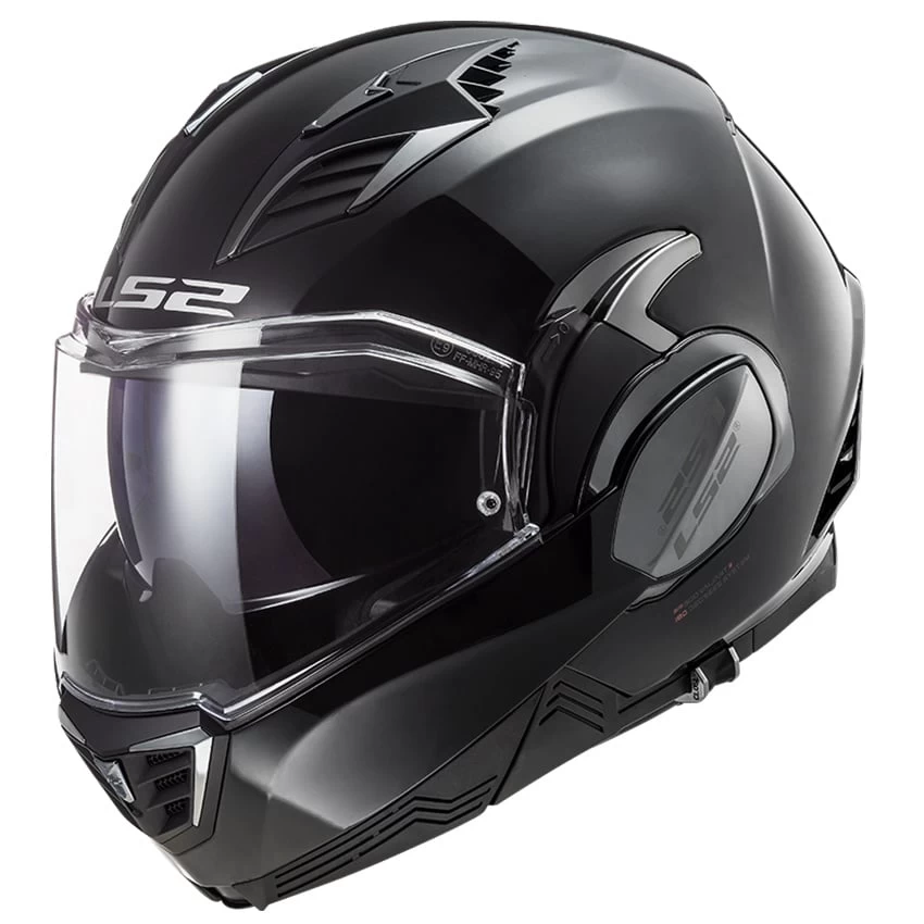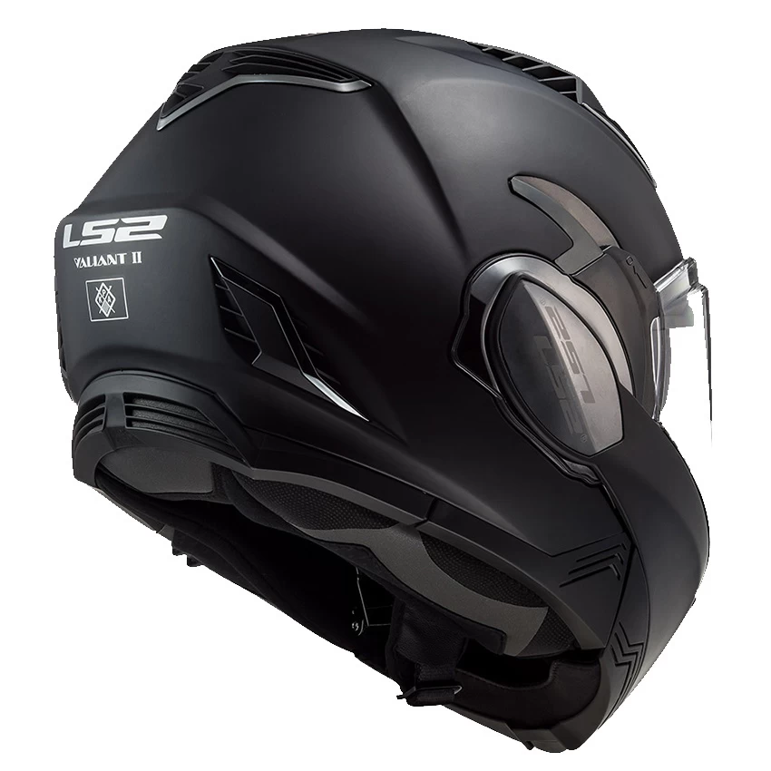 LS2 Valiant II Solid 180 degree flip front modular motorcycle helmet is the most versatile helmet on the market today. The LS2 Valiant II builds upon the success of the original Valiant, the 180-degree flip, modular motorcycle helmet. The highlight is a newly designed chin bar mechanism that is smaller and slimmer than the original, making for a more aerodynamic shell that retains all of the features and functions of the original Valiant, but with a new more modern look.