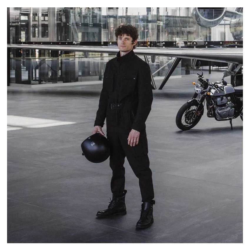 Pando Moto signature 2-in-1 black denim suit. Constructed from 11oz comfort-stretch CORDURA® denim, the Brat suit combines the timeless appeal of heritage jeans with the performance required for motorcycle riding. The abrasion-resistant fabric surpasses the highest standards (performance level A) in accordance with EN 17092, ensuring optimal protection in case of a slide or impact. The double-stitched seams not only reinforce the suit’s strength but also contribute to its classic PANDO jeans aesthetic. Exuding a rugged yet stylish look, the Brat suit effortlessly blends in with your personal style.