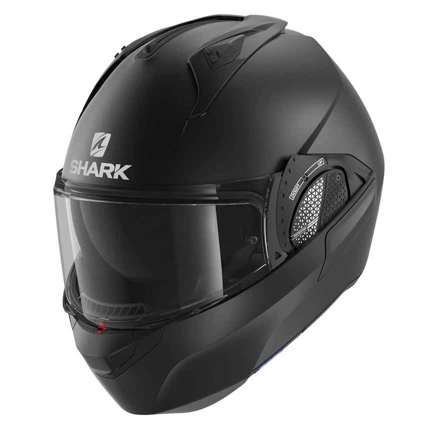 The Shark Evo GT Blank matt motorcycle helmet is made from a thermoplastic shell and come sin two sizes for a better fit. This very versatile and functional modular helmet benefits from the patented Auto-up & Auto-down shortcut system, which allows the visor to automatically rise when the chin bar is adjusted. And the “V-Tech Locking System” allows optimised locking of the chin bar for increased safety and ergonomics.Equipped with a Class 1 optical visor, it offers incomparable quality of vision.