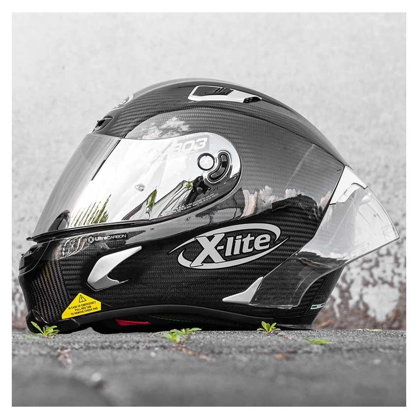 The appreciated and consolidated technical features of the X-803 Ultra Carbon are also present: compact size and reduced weight, reliable visor mechanism with a Double Action system, efficient RAF (Racing Air Flow) ventilation system and Carbon Fitting Racing Experience inner comfort padding. The X-803 RS Ultra Carbon Petrucci is presented as the most exclusive racing full-face helmet for motorcyclists who want to enjoy their experience on the racetrack to the full.